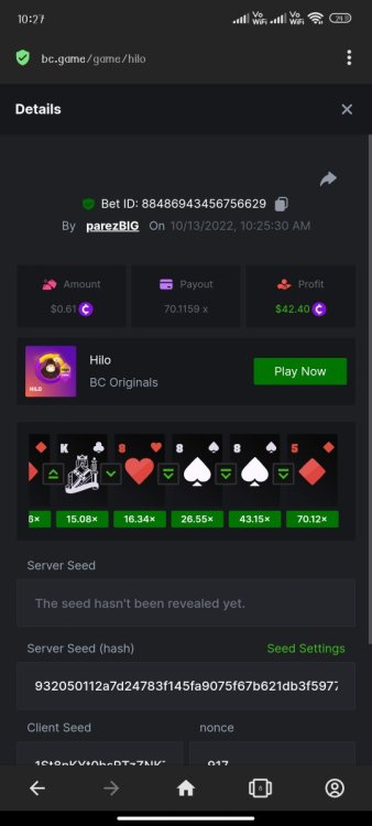 5. Bounty Bet ID: 108716260895752417 https://bc.game/#/sd/111F0VJCODM9LF