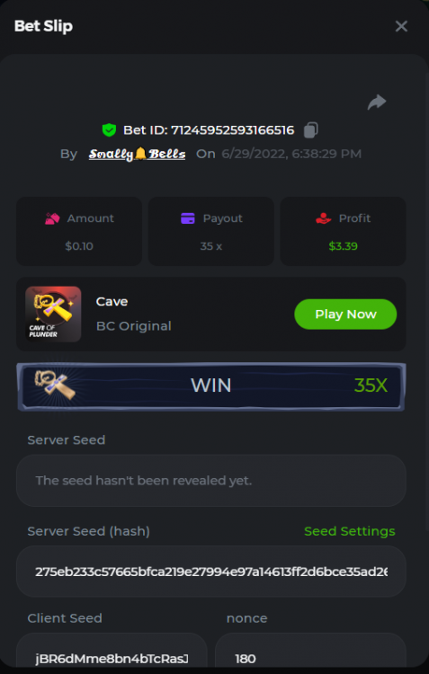 1. Sweet Bonanza: 196.44x https://hash.game/sd/?sd=10O1L1AME2AO0J Gates of Olympus: 360x https://hash.game/sd/?sd=10NXINXXM5HPUB Big Bass Bonanza: 272.5x https://hash.game/sd/?sd=10NXGKI8MBUBYR Wild West Gold Megaways: 209.12x https://hash.game/sd/?sd=10NSHRFA3IZXG3 Bigger Bass Bonanza: 636.5x https://hash.game/sd/?sd=10O4IBZ1B94M4Z Sweet Bonanza Xmas: 423x https://hash.game/sd/?sd=10NSIW1H25RBBN Starlight Princess: 285.36x https://hash.game/sd/?sd=10NSBCSCJUJAJ7 Dog House Megaways: 415x https://hash.game/sd/?sd=10NTX8PH8UUHHV It doesn't matter for anything but just FYI in case it's reused - the prize pool table pic says "4rd place" lol Bounty: 50x (idk why its .0001x - LTC fluctuations maybe...was a $5.00 win on a $0.10 bet though) https://hash.game/sd/?sd=10NXOMAF8XVF2R