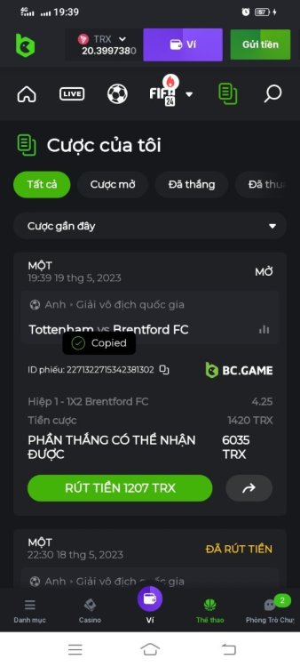 được hoàn trả sport 25 chưa vậy bạn